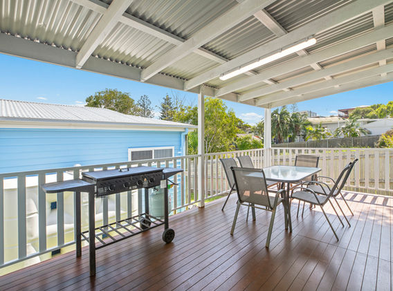 This teal-coloured bungalow includes FREE WIFI, BBQ, AirCon and washing machine.